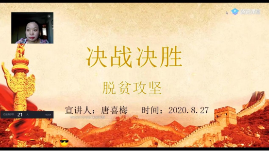 最后,唐喜梅老师建议公司的所有员工党员们在完成好学习任务的前提下,量力而行,为自己的家乡的政府的脱贫攻坚战做一些理性的分析,提出一些有效可行的意见。也可以通过笔和镜头,用文章和视频的方式把这些宣传出去。