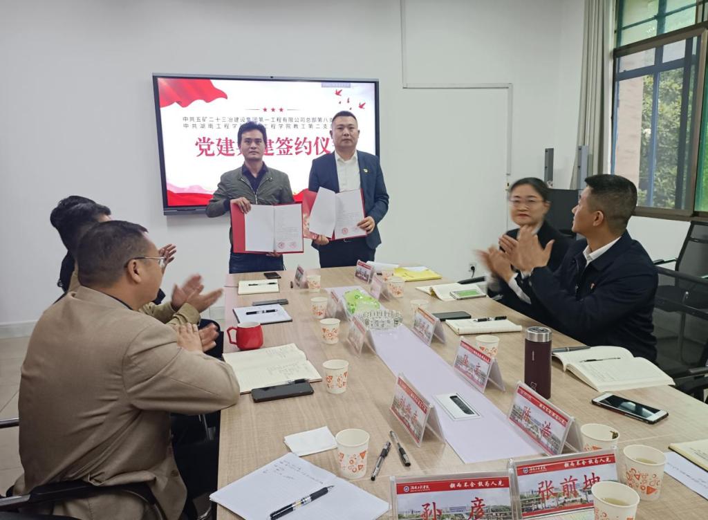 2022年5月15日下午,公司教工第二支部委员会与五矿二十三冶建设集团第一工程有限公司总部第八支部委员会联合开展了“党建校企联合、携手共建共赢”活动。五矿二十三冶一公司纪委书记、工会主席罗海等一行七人及公司经理李小华、公司党委书记张宏等十五人出席活动。