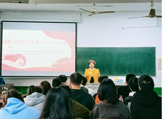 唐书记以“党的四个时期”为切入点,导出党的四个伟大飞跃和四个庄严宣言,由点到面、由表现及理论,逐步提出马克思主义中国化命题,推进习近平新时代中国特色社会主义思想概念形成。而后讲述了五大历史意义和十大经验的主要内容,并就如何学习党的十九届六中全会精神展开了讨论。唐书记表示高校肩负着培养社会主义建设者和接班人的重任,要深入贯彻习近平总书记对高等教育重要指示的具体举措,牢牢把握立德树人的根本任务,持续推进习近平新时代中国特色社会主义思想进课堂进教材进头脑,为党育人、为国育才。