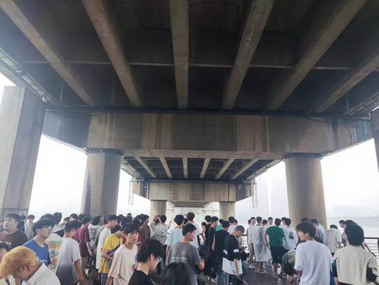 实习伊始,师生一行以湘江一桥、湘江三桥为实例,深入剖析了桥梁结构的奥秘,使同学们认识了钢筋混凝土结构空腹拱桥、双塔垂直双索面三跨连续体系斜拉桥等不同结构的桥梁,并针对同学们提出的疑问进行了详尽解答。