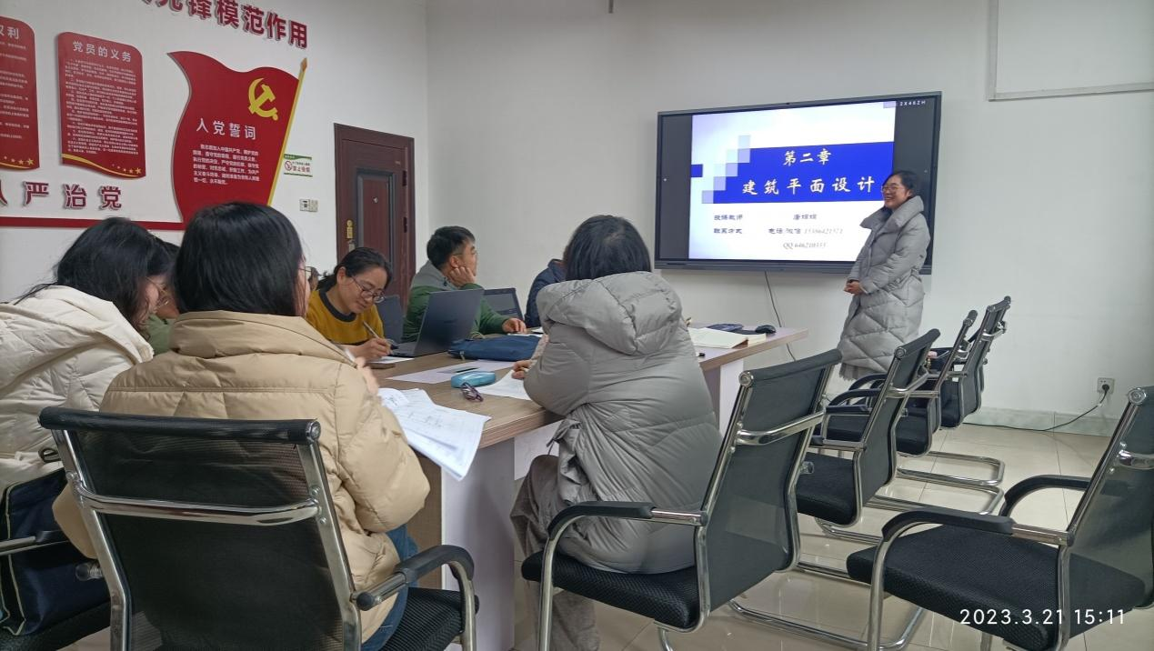 3月21日,工程管理教研室在3教309开展“一堂公开课”教研室活动。本次公开课由唐娟娟老师主讲,讲述内容是关于房屋建筑学课程中的建筑平面设计,工程管理教研室全体老师参加。
