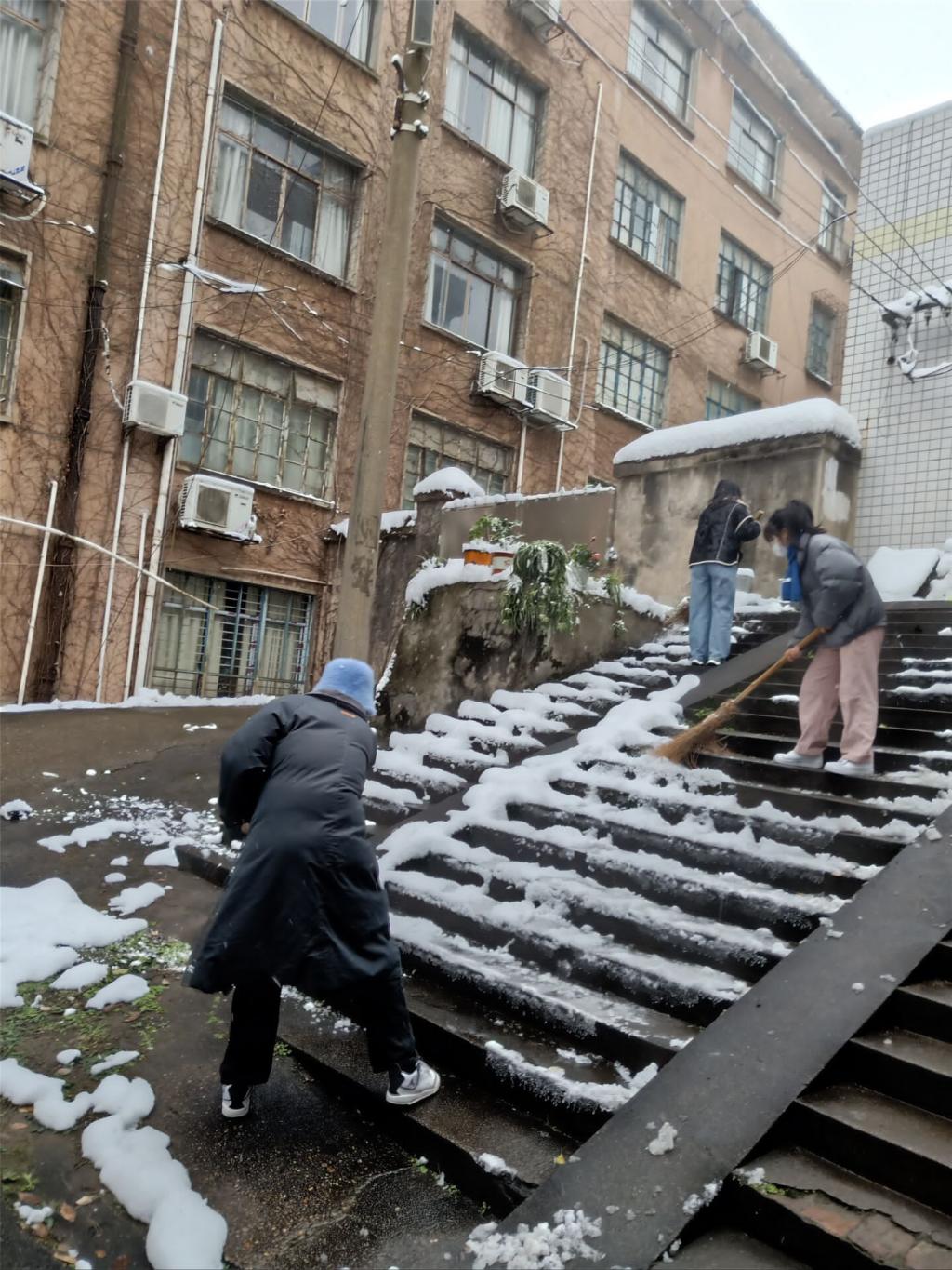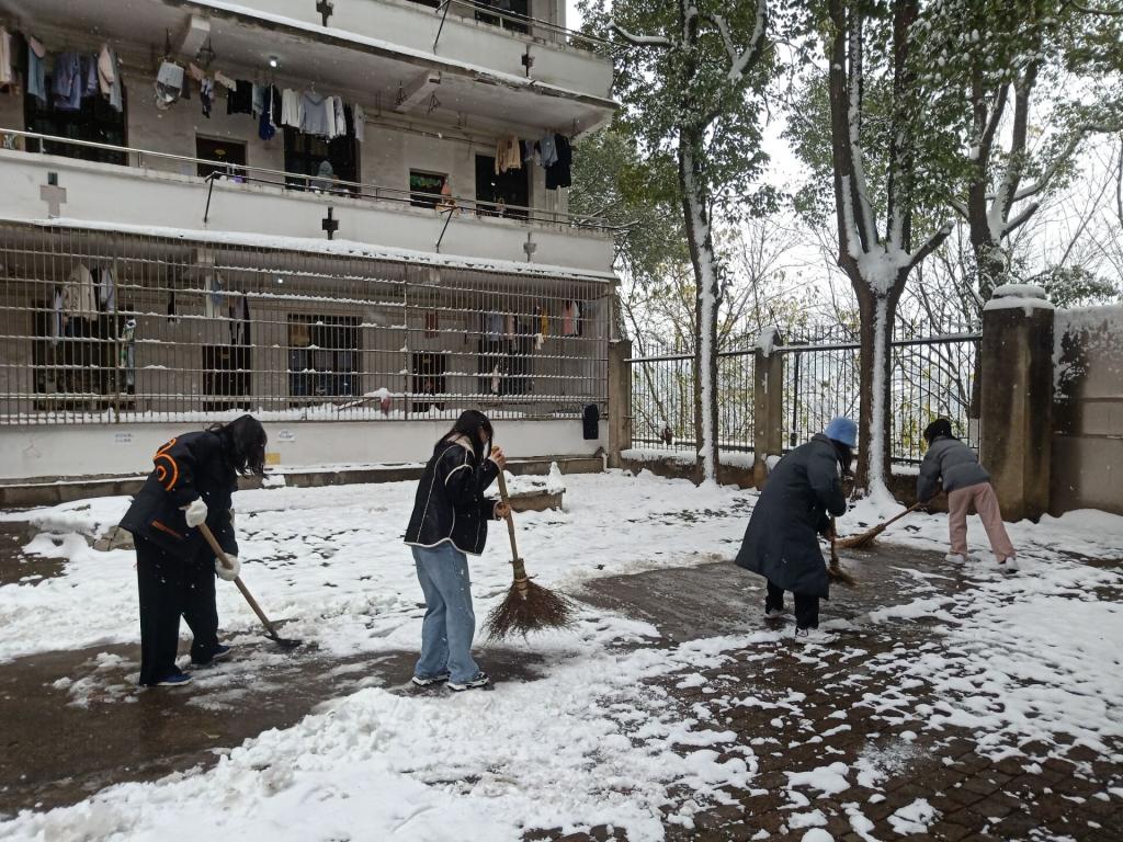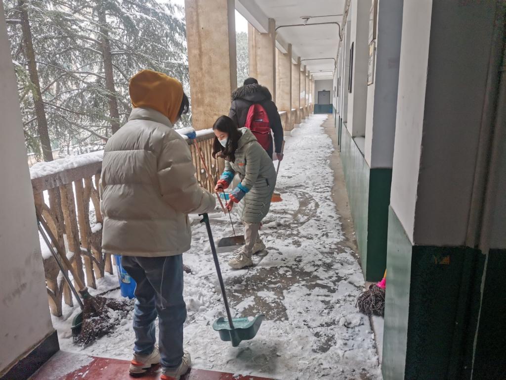 皑皑白雪美化了城市,但也给人们出行带来了不便。为了保证大家的出行安全和道路通畅,beats365官方网站员工党员干部纷纷拿起铁锹、扫帚等劳动工具,来到宿舍楼、三教教学楼前清雪除冰,大家不畏严寒、齐心协力,配合默契,铲的铲、推的推,干得热火朝天,不亦乐乎,忙碌的身影构成了一道亮丽的风景线。经过一个小时的集中奋战,道路变得整洁通畅。