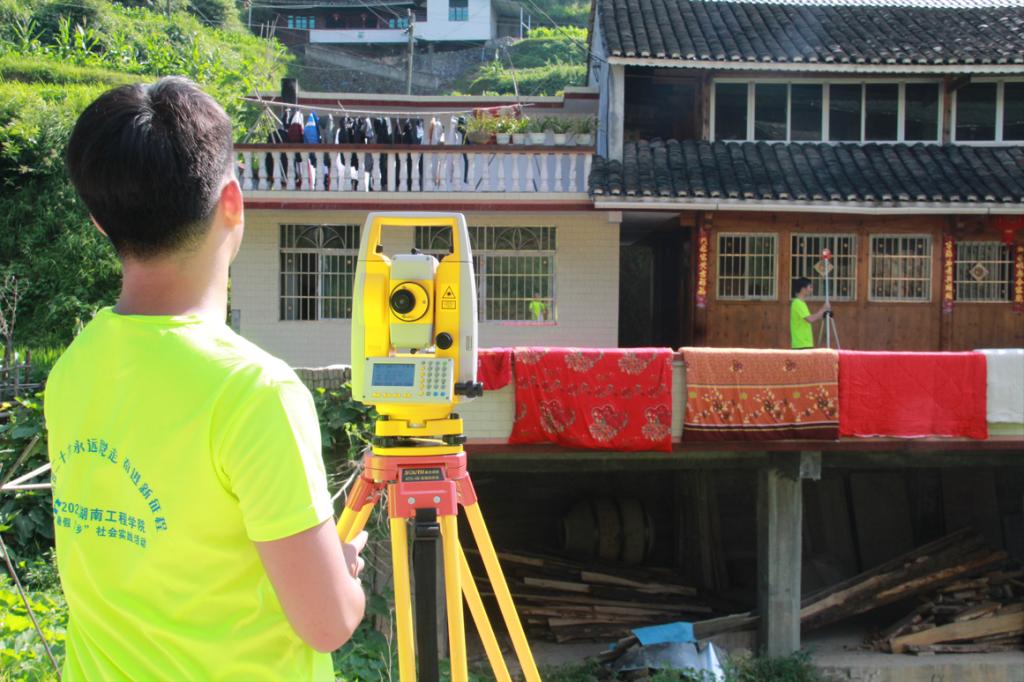 规划改造组成员充分发挥所学专业知识,以提升村容村貌为重点,不畏酷暑,扛着全站仪、棱镜架等测量设备对村民住房和道路桥梁进行定点测量,凝练埔坪村特有的建筑风貌,并就自建房修缮与改造、木结构民房倾斜处理、道路池塘边警示牌设立等问题提出了相应建议。经过前期的村内建筑和道路的调研踩点,成员们不断标点、读数、计算,探讨了村委会周边、村组聚集点的人居环境提升初步规划。实践团将所学专业知识运用于实践中,为助力美丽乡村建设和安全乡村建设贡献了智慧和力量。