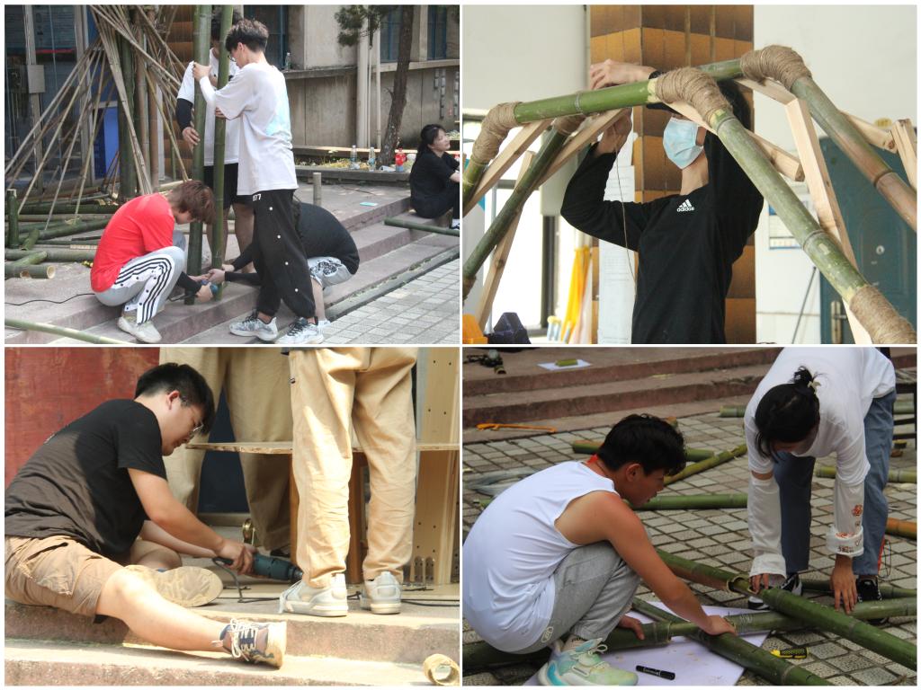 据悉,本次活动于5月初开启,以“书香校园”为主题,收到50余组供师生读书休憩的建构作品方案,通过同学们汇报设计方案、建造方式等进行比拼,从结构逻辑、建造逻辑、形式美感三个方面进行考虑,线上线下投票最终确定《伞》等四个作品进行实体搭建。历时十二天,来自全校计算机、机械、电气、经济、管理等公司的学子与beats365官方网站学子协力参与建构活动。同学们有条不紊地将作品的概念构思落实到室外搭建中,共经历了12天的实际建造,累计439人次参与,最终作品放置在北校区第三教学楼门前展示。