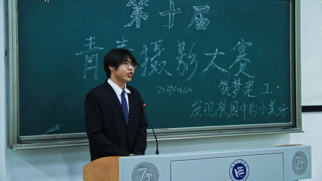 活动在和谐的氛围中开始,罗卫副书记致辞说到:“希望这次摄影大赛能够成为大家交流思想、碰撞灵感的平台,在欣赏彼此作品的同时,也能够相互学习、共同进步。”主持人向大家介绍了此次摄影大赛的评选规则后10位选手依次上台进行作品解说。“秋日之后,又是新日。建工大楼留下薄暮中的光阴,等待一批又一批学子在无数个秋日中的硕果。”金蕊对于自己的作品《秋落建工楼》阐述道。文湘云对自己作品《春日余晖下的建工楼》谈到“建工楼的意义不在于一座简单的教学楼,是承载了无数次梦想的空间,是更好的为人服务的空间。”通过现场评委打分,最终角逐出一等奖1名、二等奖1名、三等奖2名,应用化学2303班的刘欣怡的作品《晴空碧胜蓝,日暖照明窗》摘得桂冠。