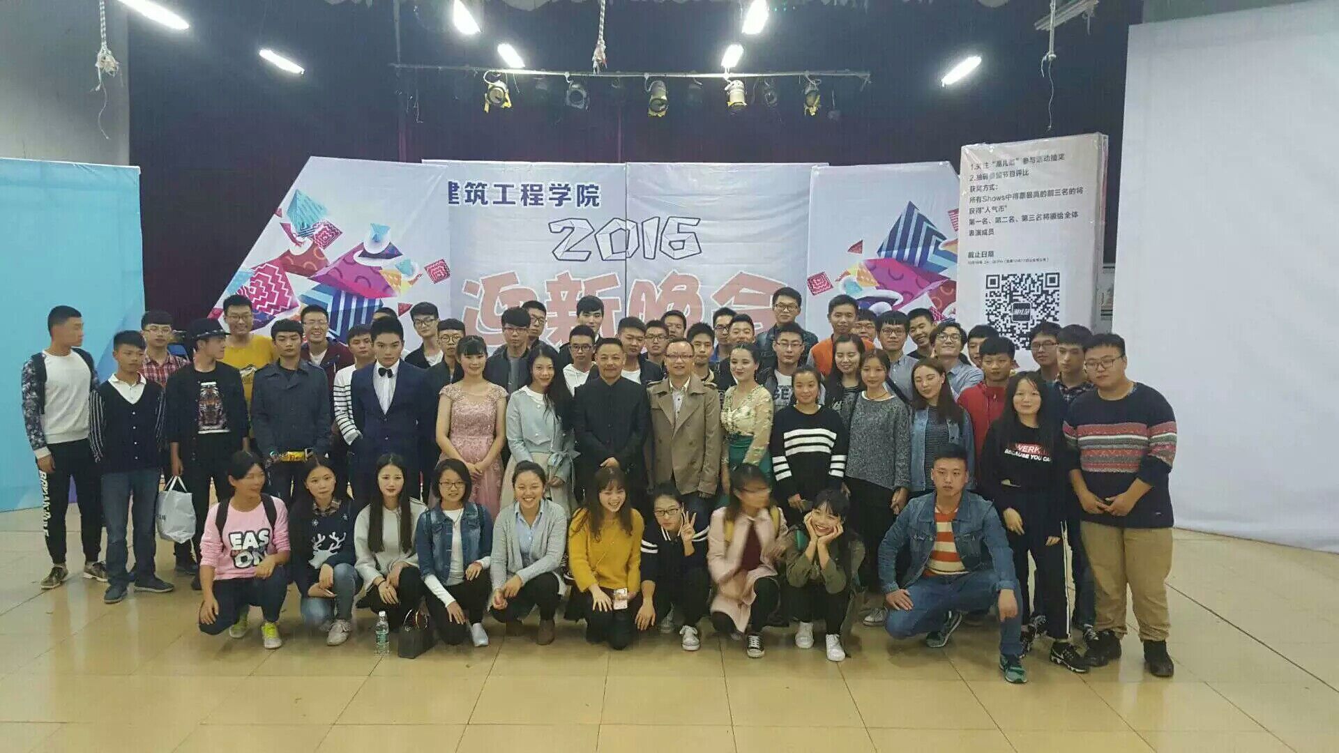 本次迎新晚会由15届新生才艺大赛冠军木亚沙尔·多力坤带来的一段精彩的民族舞拉开序幕,之后有幽默的小品《组建团队,编制未来》、激情的街舞表演、活力四射的啦啦操、深情的默剧、钢琴独奏等形式多样的节目,晚会进行到如火如荼之时,单山鸣书记还献唱一曲,以表达对16级新生的热烈欢迎。最后,晚会在李飏帆团队的青春歌舞剧中圆满落下帷幕。