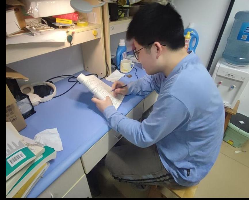 考研之路漫漫,沿途却有风雨同舟的温暖。大三开始,同一个专业的刘志强等六位同学就约定组成考研小组,各自制定了计划书和目标。每天晚上,他们在寝室里一起学习、讨论、互相解惑。在备战过程中,刘志强的数学功底出色,成为大家的数学“教练”;王定强擅长逻辑推理,常常为大家解答难题;李积祥则是“人肉搜索引擎”,擅长查找资料和整理复习笔记;张庭福和曾智煌性格安静爱思考,善于总结归纳;潘闻杰则是技术宅,经常用电脑模拟考场环境,提高大家的应试能力。