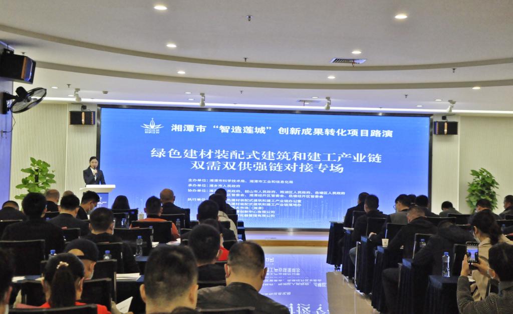 10月21日,“智造莲城”创新成果转化项目路演绿色建材装配式建筑和建工产业链双需双供强链对接专场活动在潇湘科技要素大市场湘潭分会场举行。