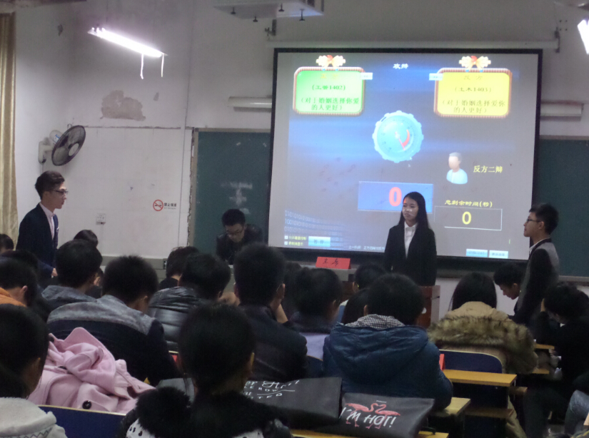 2015年11月15日晚七点,beats365官方网站第十四届辩论赛于主校区(北)红楼109教室开幕,本次辩论赛由院辩论队队员担任评委,两支代表队分别是工程管理1501班和建筑学1401班,此次辩论赛围绕“禁毒工作主要依靠社会力量还是政府力量”为辩题展开了激烈的辩论。