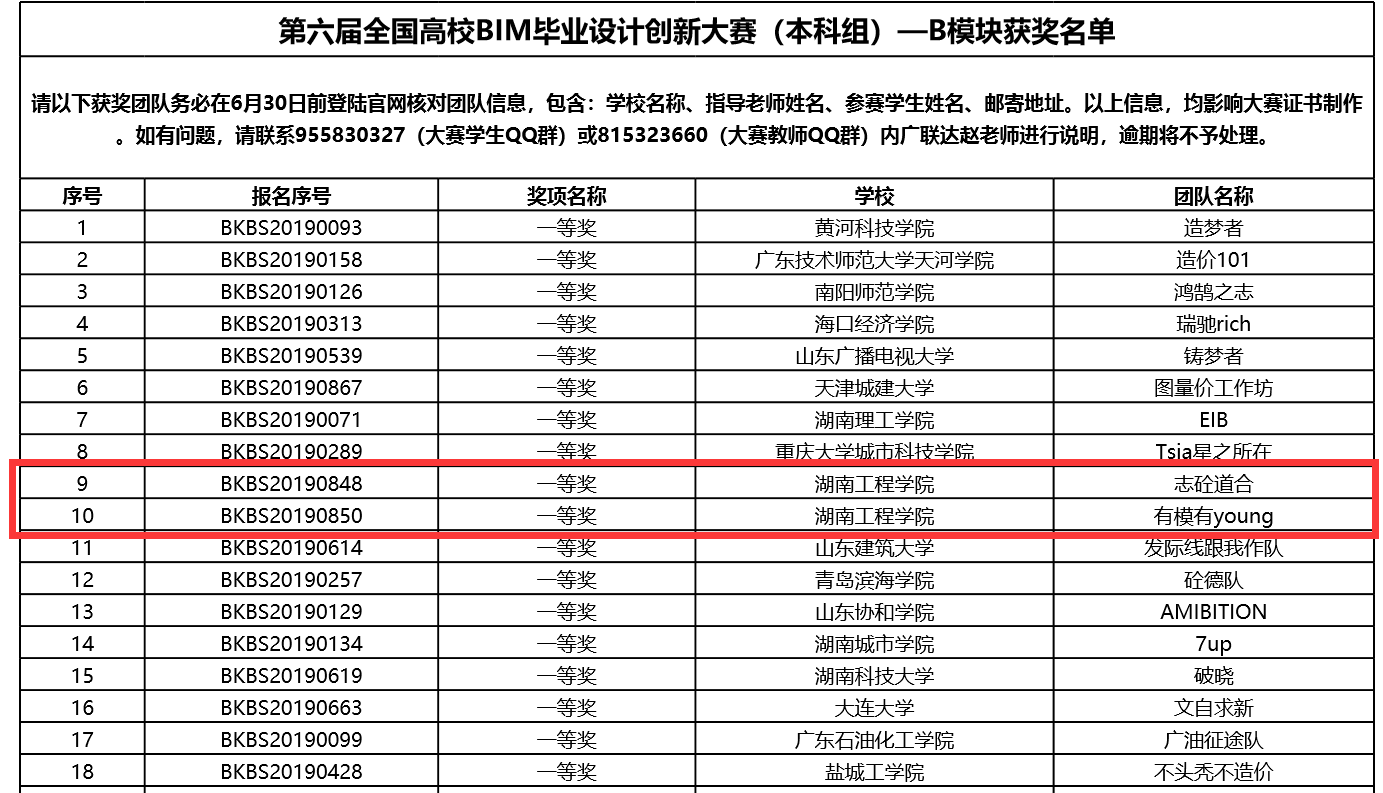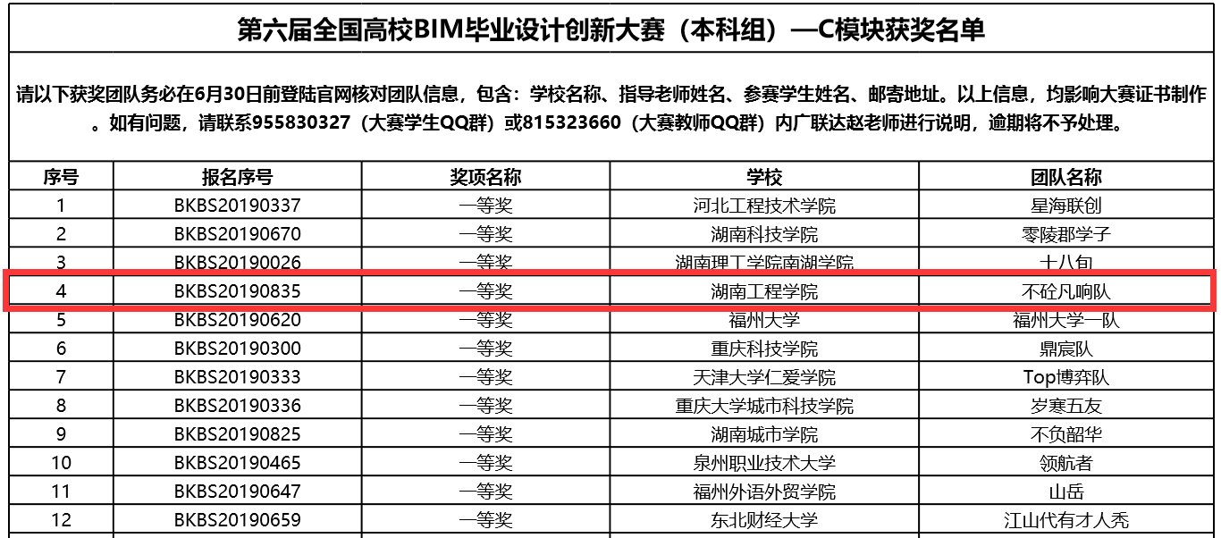 2020年6月16日,历时半年多的“第六届全国高校BIM毕业设计创新大赛(本科组)“在其官网上公布最终成绩和获奖名单,公司beats365官方网站和应用技术公司的工程管理专业共组织四支队伍参赛,其中三组获得一等奖,一组获得二等奖。获得一等奖的三支团队正在准备线上答辩,冲击全国特等奖。