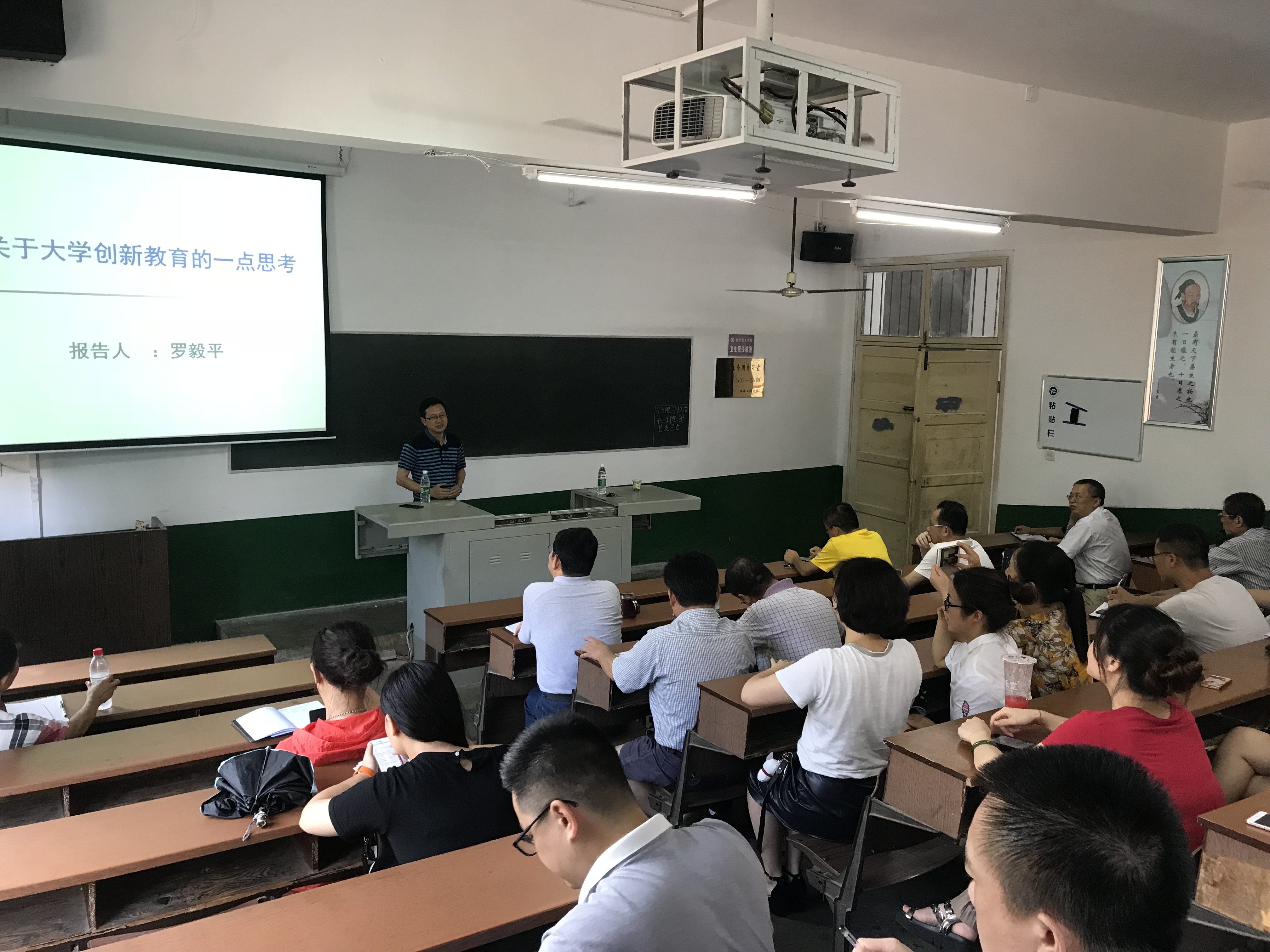 7月3日下午,公司党委委员、副董事长罗毅平教授在四教102为beats365官方网站与国际教育公司讲授题为“关于大学创新教育的一点思考”的思想政治课。建筑工公司与国际教育公司全体教工党员参加学习。