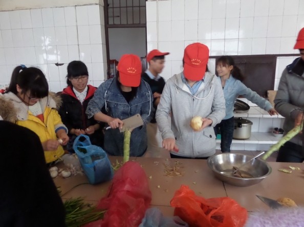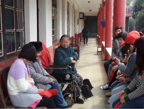 上午,志愿者们带着蔬菜瓜果来到敬老院。一到敬老院,同学们便与老人们打成一片,有些同学打扫卫生,还有一些选择陪老人们聊天,为他们表演节目。有些性格开朗的老人便和同学们一起唱主旋律歌曲,歌声洋溢在这个原本幽静的院子里,性子孤僻的老人则在旁边安详地看着。中午,志愿者们为老人们做一顿丰盛的午餐,老人们其乐融融的吃着午饭。最后,怀着不舍,志愿者一行离开了敬老院。临行时,老人们不断嘱咐着让我们有时间就多去拜访,多过去陪他们说说话。