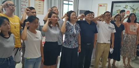 第二项活动由支部书记领读,全体党员重温入党誓词。入党誓词短短十二句,字字珠玑,意重如山。重温入党誓词不仅仅是重温当初入党时的决心和信念,更是为了让党员干警在誓词中读懂中国共产党人矢志不渝的初心、奋斗终身的信念,把红色基因融入骨血,以实际行动肩负起时代重任,努力拼搏,锐意进取,为实现中华民族伟大复兴的中国梦贡献力量。