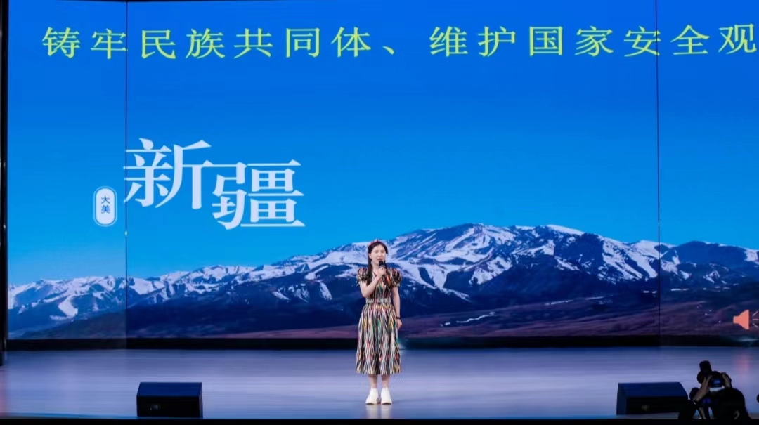 阿依谢木古丽·依孜布拉来自新疆,她向大家介绍了大美新疆、平安新疆、幸福新疆,讲述了自己在公司愉快的学习与生活故事。她表示,要持续深入践行总体国家安全观,铸牢中华民族共同体意识,争做新时代最耀眼的石榴籽,共同为中国式现代化建设贡献智慧和力量。