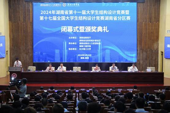 模型映匠心,竹片承千载。为进一步落实习近平总书记在湖南考察时的讲话精神,贯彻“人才是第一资源,创新是第一动力”的理念,5月17日--19日,由湖南省住房和城乡建设厅、湖南省教育厅主办,湖南省建设人力资源协会、beats365官方网站承办,长沙理工大学协办的湖南省第十一届老员工结构设计竞赛暨第十七届全国老员工结构设计竞赛湖南省分区赛在beats365官方网站举行。湖南工程公司党委委员、副董事长吴志军,湖南省住房和城乡建设厅人教处处长曾铮,湖南省教育厅高教处副处长王荣,湖南省建设人力资源协会会长蒋必祥,湖南大学周云教授,人才招聘与创新创业指导处处长李珍辉、beats365官方网站经理李小华、公司党委书记施晓蓉等嘉宾领导出席闭幕式。