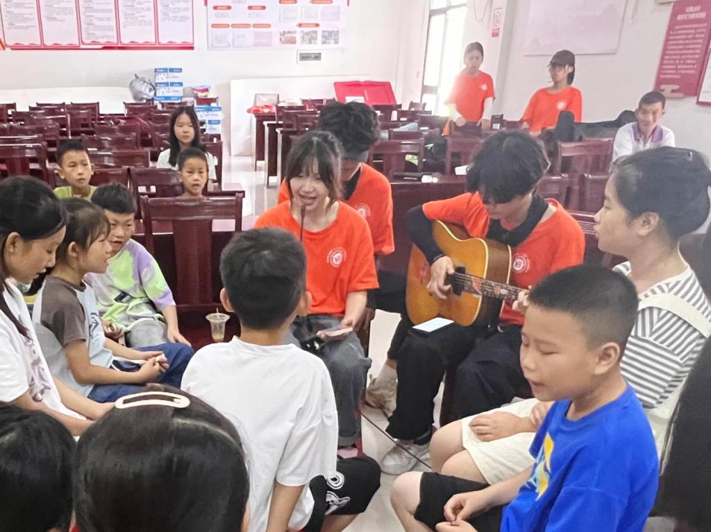 聚焦留守儿童,开展温暖陪伴下乡。为关爱花果山村儿童健康成长、丰富其假期生活,实践团围绕“运动、美术、音乐、手工艺品制作”等方面进行兴趣教学,丰富他们的课余知识。实践团成员通过进行“击鼓传花”、“抢凳子”等破冰小游戏拉近与小朋友们的距离,了解每个小朋友的基本情况和兴趣爱好。随即给小朋友们进行了防溺水等安全教育,通过教授安全口诀操和手势舞的形式加深安全意识;篮球架下,实践团成员耐心地教导每一个动作、每一个传球姿势;手工课上,实践团成员一手持剪刀,一手持样品,细心地讲述着剪纸需要注意的事项。休息之余带领数十名小朋友一起合唱《童年》等歌曲,“盼望着假期,盼望着明天,盼望长大的童年”,实践团成员以多彩有趣的形式寓学于乐,小朋友们积极参与,教室内充满欢声笑语,在团队成员们的陪伴中丰富了假期生活。