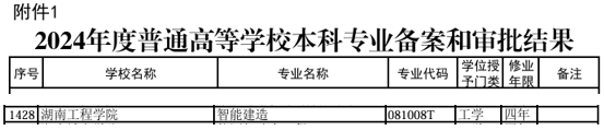 根据教育部4月8日印发的《关于公布2024年度普通高等公司本科专业备案和审批结果的通知》(教高函〔2025〕3号),公司获批智能建造本科新专业。