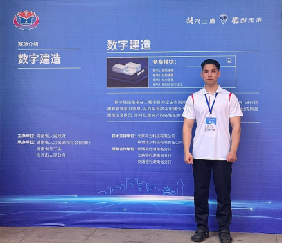 4月18日晚,由省人民政府主办的湖南省第二届职业技能大赛在株洲闭幕。公司学子谭猛在指导老师汤丹的精心指导下,在数字建造赛项中脱颖而出,获优胜奖。